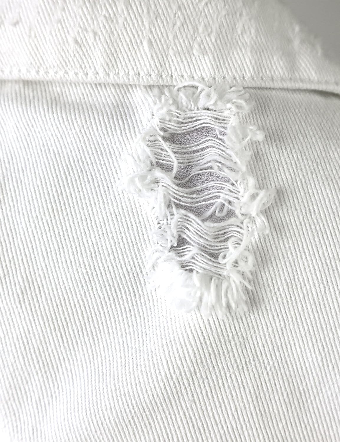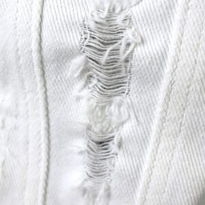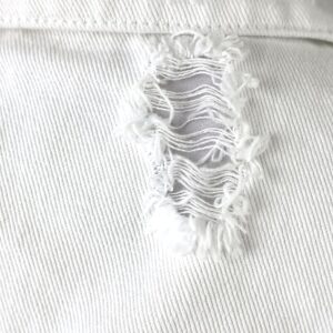 Long sleeve, button front, turndown collar, rip destroyed holes details