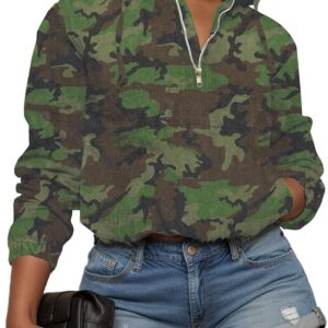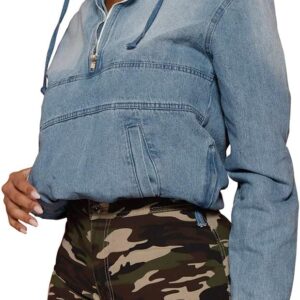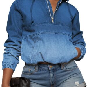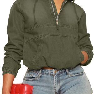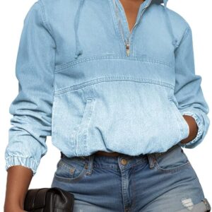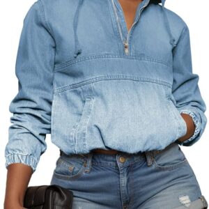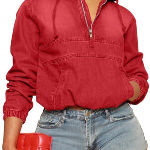 Aomice Women's Half Zip Denim Hoodie Pullover Jacket Jean Sweatshirts