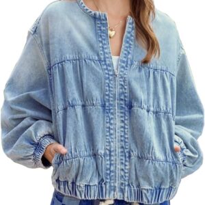 Ruffled denim jacket with round neck, trendy and unique!