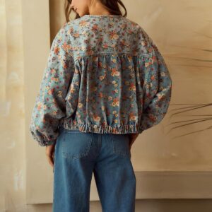 CHOUYATOU Women's Cute Floral Print Denim Bomber Jacket