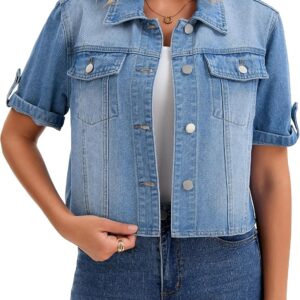 - Classic button-up closure and short sleeves make this jacket easy to pair with dresses, tops, or jeans, making it a versatile piece in your wardrobe.