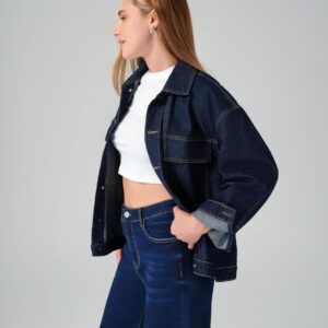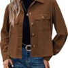 roswear Denim Jacket Coat for Women with Flap Chest Pockets Casual Oversized Jean Jackets