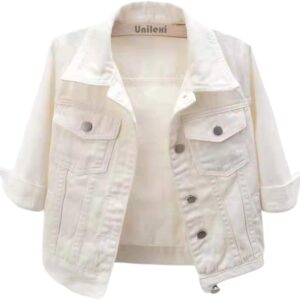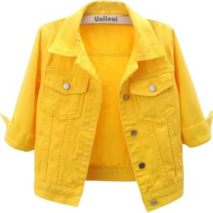 Unilexi Women's 3/4 Sleeve Colored Cropped Denim Jacket Light Wash Short Jean Jacket Trucker Coat