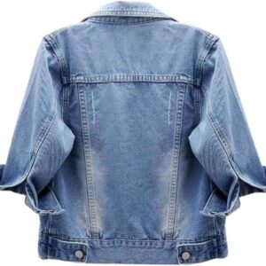 - Turn down collar, 3/ 4 Sleeve, Crop jean jacket